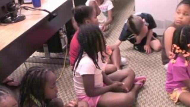 Over one month, students in the summer enrichment program at the Russell Byers Charter School learn to deconstruct media messages and how to create their own. One exercise involves watching a short program clip and answering questions such as "Who is the author and what is his purpose?" and "Who is the target audience?"