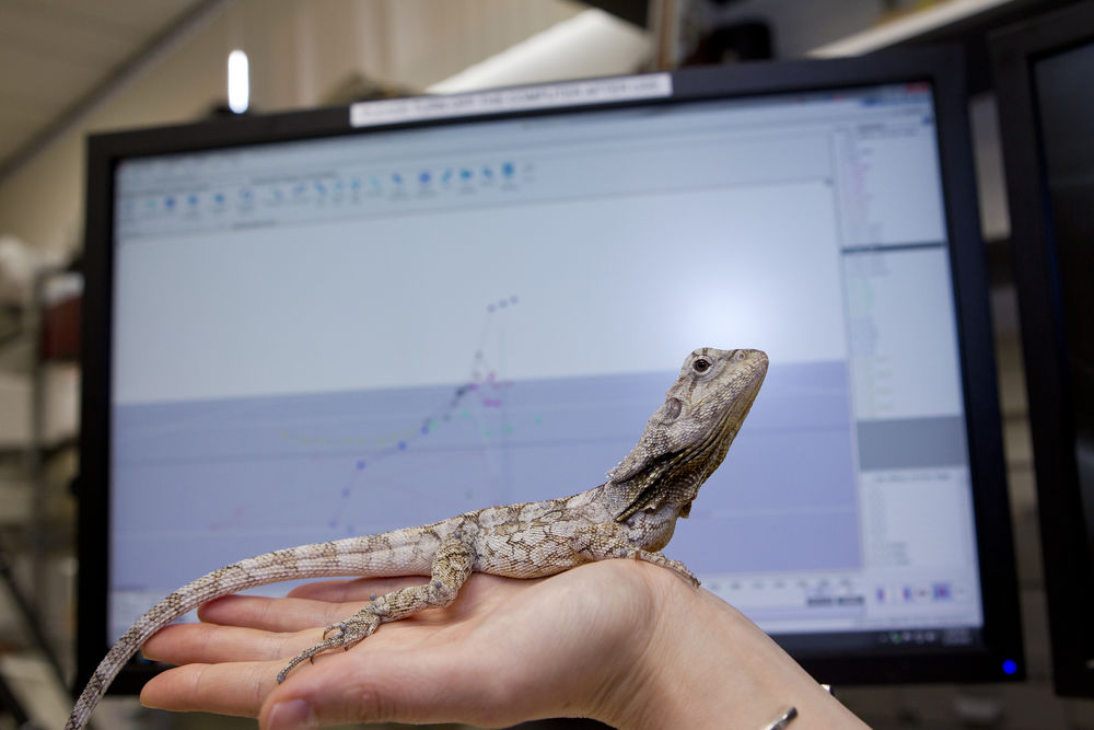 But what are these built-in control mechanisms and how do they work? Hsieh believes the answers lie in the locomotion of some 130 lizards she has been studying in her lab, particularly basilisk lizards nicknamed Jesus lizards because they can run across water and baby frilled dragons from Australia.