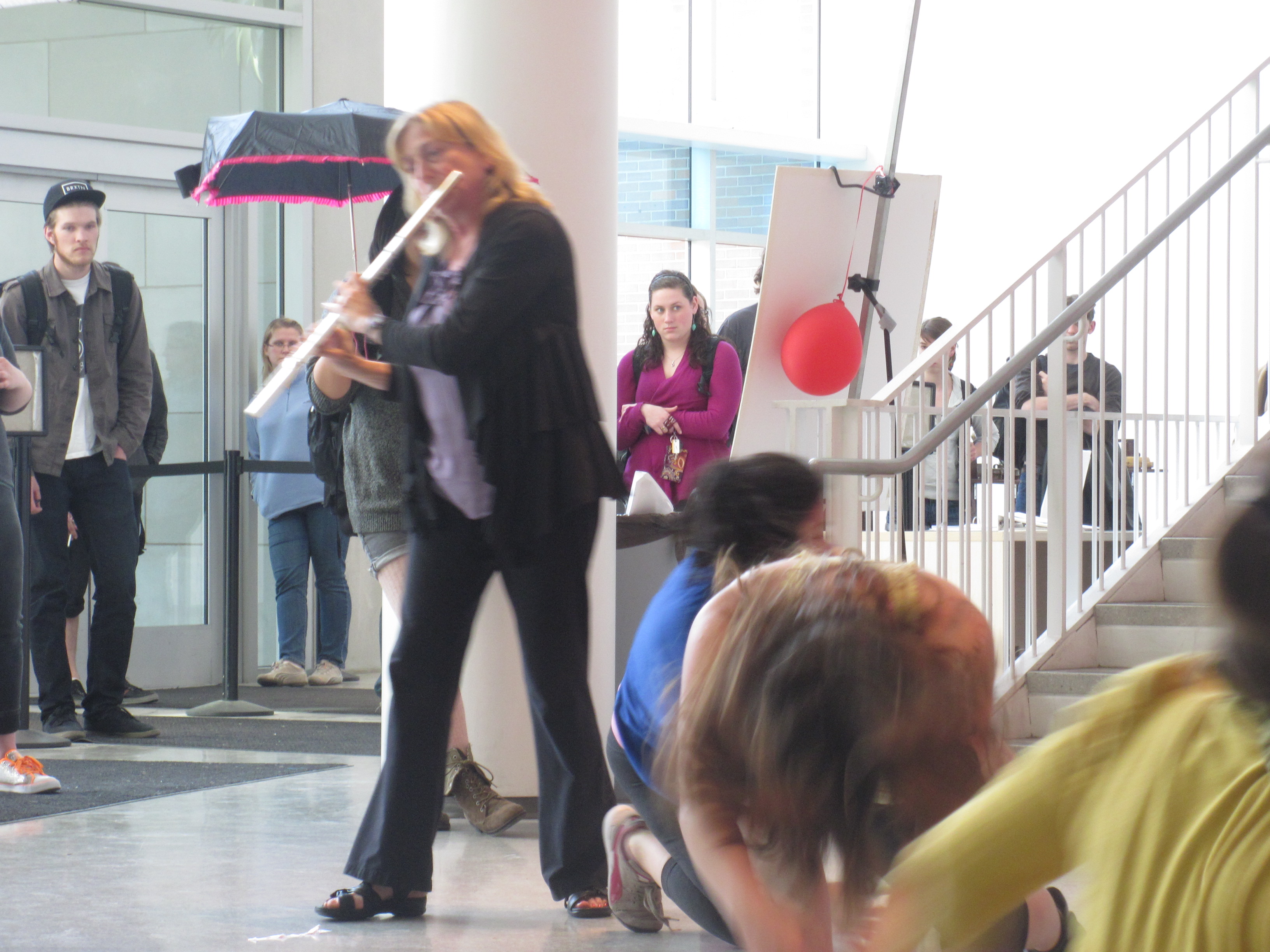 Dancers floated down the main stairway with umbrellas, gliding into the lobby. Jazz musicians filled the atrium with improvized riffs that carried to the upper floors. Visual artists exhibited their engaging works on the building's walls and in open spaces.
