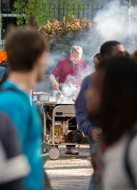 As classes were winding down and the weather warming up, Temple President Neil Theobald broke out the grill and gave students a taste of summer.