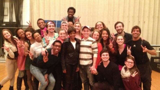 Following the question-and-answer session, students and faculty joined Moore in a rehearsal room for an informal discussion and impromptu performances. She also gave the student actors a standing ovation and pulled the cast aside for private notes.