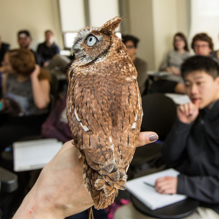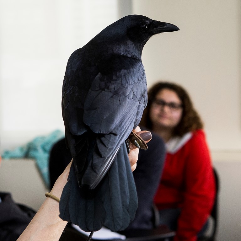 Things got wild in Assistant Professor Dan Featherston s First-Year Writing course this week, when two wildlife ambassadors from the Schuylkill Wildlife Rehabilitation Clinic made guest appearances. Michele Wellard, a licensed wildlife rehabilitator and the clinic s assistant director, brought an Eastern screech-owl and a fish crow to Featherston s class.