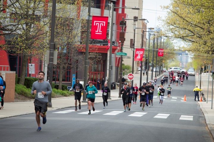 Runners got an early start on Saturday, April 25, with the second annual Capt. Eileen Bradley 5K Run and Fun Walk, leading participants on three laps of Temple s Main Campus. More than 300 members of the Temple community came out to complete the circuit and enjoy a street fair on Polett Walk.