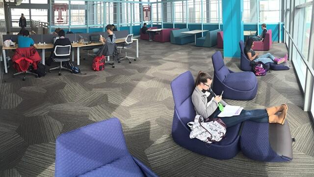 Senior advertising major Adella Hillebrecht had only used the fourth-floor Owls Nest lounge at Tuttleman Learning Center a few times before it was recently renovated. But now that the third- and fourth-floor common areas have been upgraded with new carpeting, computer workstations, fold-out lounge chairs and tables, she and her classmates have made it their regular meeting spot for group projects.